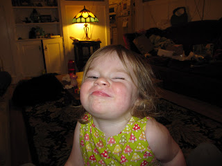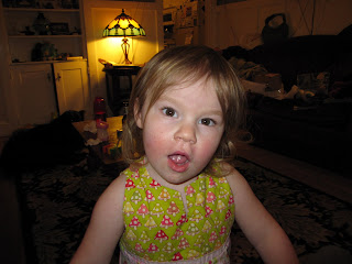 Mama wanted some pics to share of Margot STILL fitting in the dress a friend made for her ages ago. This is Margot's best pose-for-a-picture pose, or at least her favorite one on this particular evening.