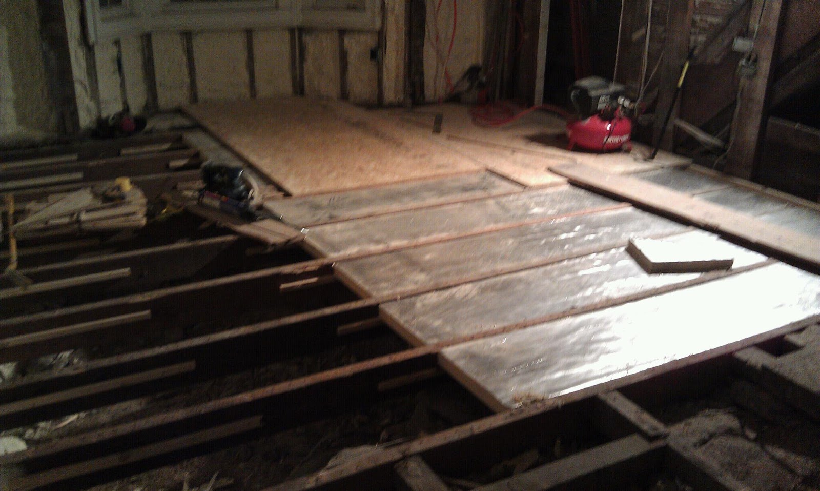 Quick shots ... Rebuilding floor in the front section. We actually got through pretty much all of the ex-living room area. More floor tomorrow!